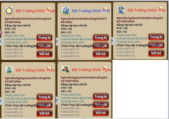 Bảng kỹ năng hàng sau