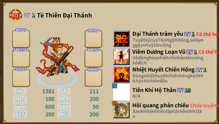 Võ Tướng:”Tề Thiên Đại Thánh” (ATK/FULL KHÁNG)